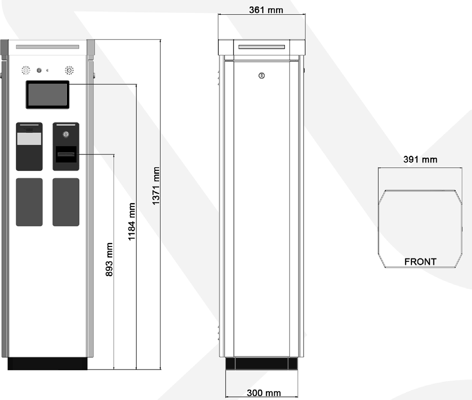 • Modulo scanner ottico per la lettura dei ticket di sosta, QR Code su supporti cartacei Smartphone (abbonamenti brevi, voucher, pass). • Display touch screen ad alta risoluzione da 7” con vetro antivandalo. • Loop detector a due canali programmabile e altamente sensibile. • Gestione allarmi con notifica al server di parcheggio on site o XMS cloud. • Pagina help e Video 3D dinamici per assistere ulteriormente l’utente durante le varie procedure d’ingresso. • Visualizzazione info ticket o abbonamenti (credito residuo, validità) • Menu operatore dedicato con svariate funzioni ed accesso tracciato. • Funzione cambio lingua testi ed audio tramite touch screen. • Cambio interattivo della lingua testi e voci riprodotte. • Pulsante SOS per visualizzazione messaggio emergenza personalizzato. • Lettore di prossimità RFID 125kHz o MIFARE da 13,56 MHz per tessere operatore e abbonamenti. • Ventole e riscaldatore gestiti elettronicamente dalla CPU interna. • Funzionamento garantito anche in assenza temporanea di connessione con il server parcheggio (modalità Stand Alone). • Serratura di sicurezza antieffrazione a barre contrapposte. • Corpo in lamiera d’acciaio con rivestimento elettroforetico protettivo e vernice poliestere, RAL 7047 o differenti su richiesta.