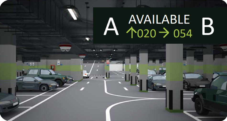 Sono disponibili totem interattivi con mappa per la ricerca del proprio veicolo tramite targa, oltre a una vasta gamma di pannelli LED (numerici, frecce, matrici) per guidare rapidamente l’utente verso i posti liberi.