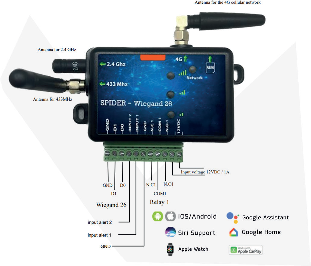 Dispositivo Hardware • Connessione 4G, Bluetooth e Wifi, per garantire la connessione in ogni situazione. • 1 relè di uscita (N.O./N.C.) per l’attivazione di cancelli, porte o altri dispositivi. • 1 slot per SIM card, compresa con canone mensile. • 2 ingressi configurabili con notifiche in tempo reale via email e push su APP Utenti. • Ricevitore wireless 433 MHz per la gestione di radiocomandi (solo X Access Radio 433). • Ingresso segnale Wiegand 26 compatibile con lettori RFID, tastiere di accesso telecamera ANPR per la lettura delle targhe Nea Lite. • Compatto e facile da installare (dimensioni 53x80 mm). • Alimentazione a 12VDC. Modalità di Apertura • Apertura con App Mobile (iOS e Android). • Apertura tramite chiamata telefonica (Dialing). • Apertura con Bluetooth in prossimità (regolabile in distanza). • Compatibile con Siri e Google Assistant per il controllo vocale. • Tramite lettura targhe e lettori RFID. Integrazione e Personalizzazione • Gestione avanzata con un’app dedicata agli utenti per smartphone. • Portale web in Cloud per installatori e gestori, con monitoraggio in tempo reale. • Personalizzazione dell’interfaccia con loghi, colori e configurazioni su misura. • Possibilità di installazione su cloud privato del gestore. Connettività e Sicurezza • Compatibile con reti 4G per un controllo remoto ovunque. • Sistema crittografato e sicuro per la protezione degli accessi. • Indicatori LED di stato per connessione SIM e segnale di rete. Mobile App & Portale WEB in Cloud • App Mobile intuitiva dedicata agli utenti finali (iOS e Android), con apertura rapida e gestione degli accessi. • Portale Web dedicato ai gestori dell’automazione, con strumenti avanzati di configurazione, monitoraggio e gestione degli accessi utenti. • Supporto per apertura automatica con Bluetooth all’arrivo in prossimità del varco.